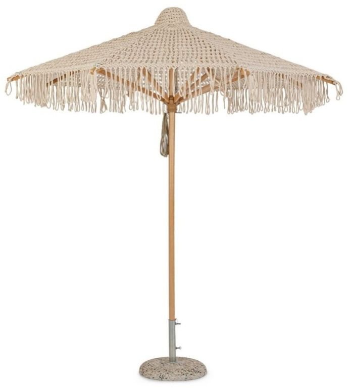 Elevate your outdoor style with our exquisite Macrame Umbrella, a perfect fusion of intricate artistry and practical design. Handcrafted with love, this umbrella features a stunning macrame canopy that showcases a beautiful pattern of knots and fringes, adding a touch of bohemian elegance to any setting.